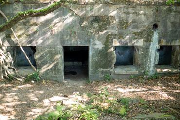 These bunkers close to the junction of Shek O Road and Tai Tam Road were bombed during the assault on Hong Kong but were never attacked as the Allies withdrew to Stanley. There is an underground bunker here including a 'Fortress Plotting Room', equipped with 1 plotting table, 1 encoder, and 8 personnel. East Brigade under Brigadier Wallis was made up of the Ra