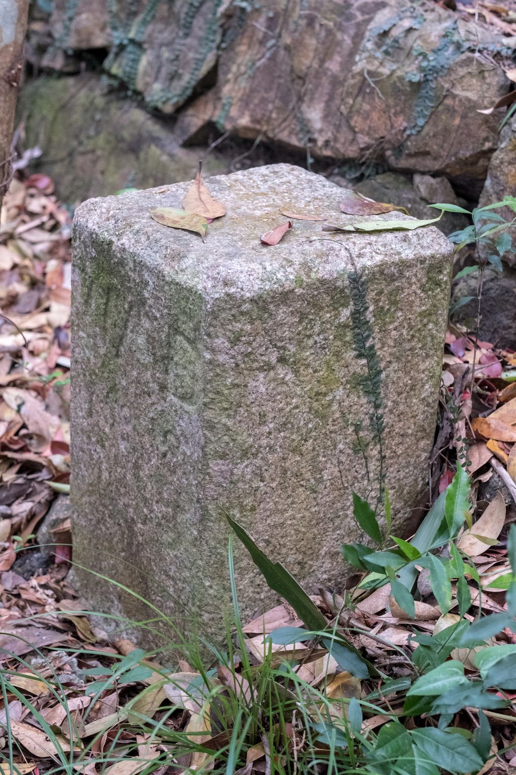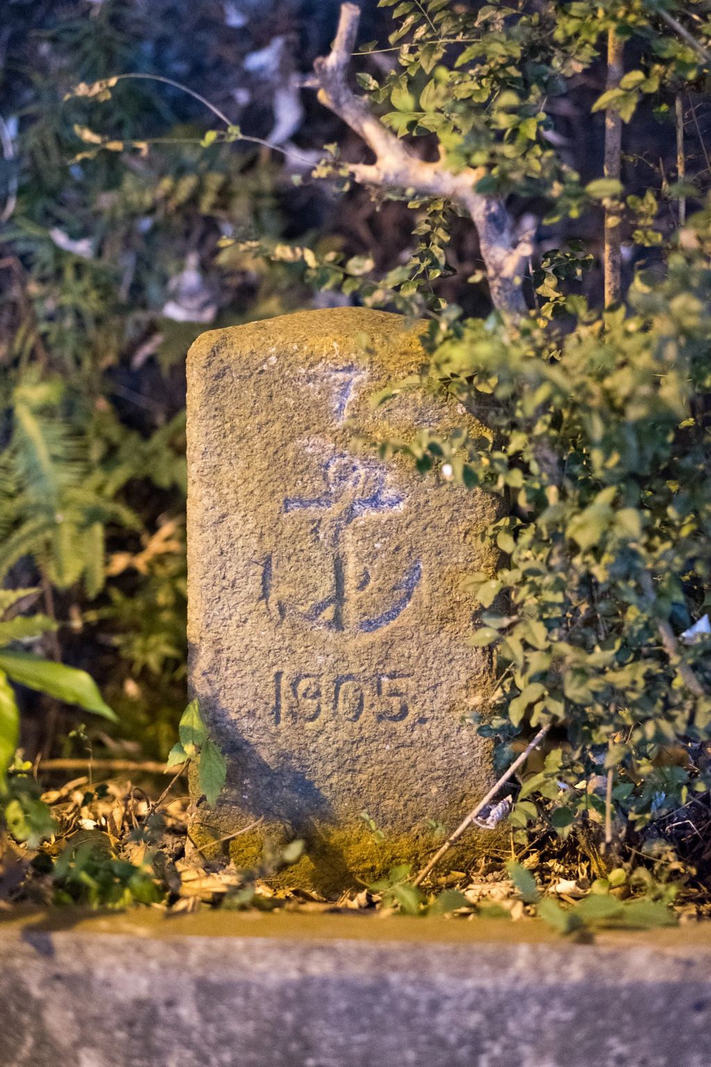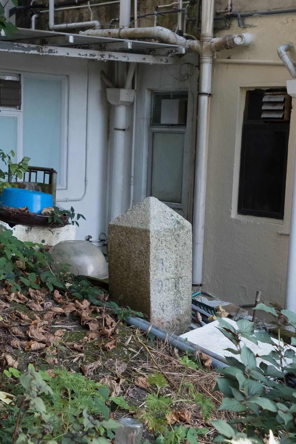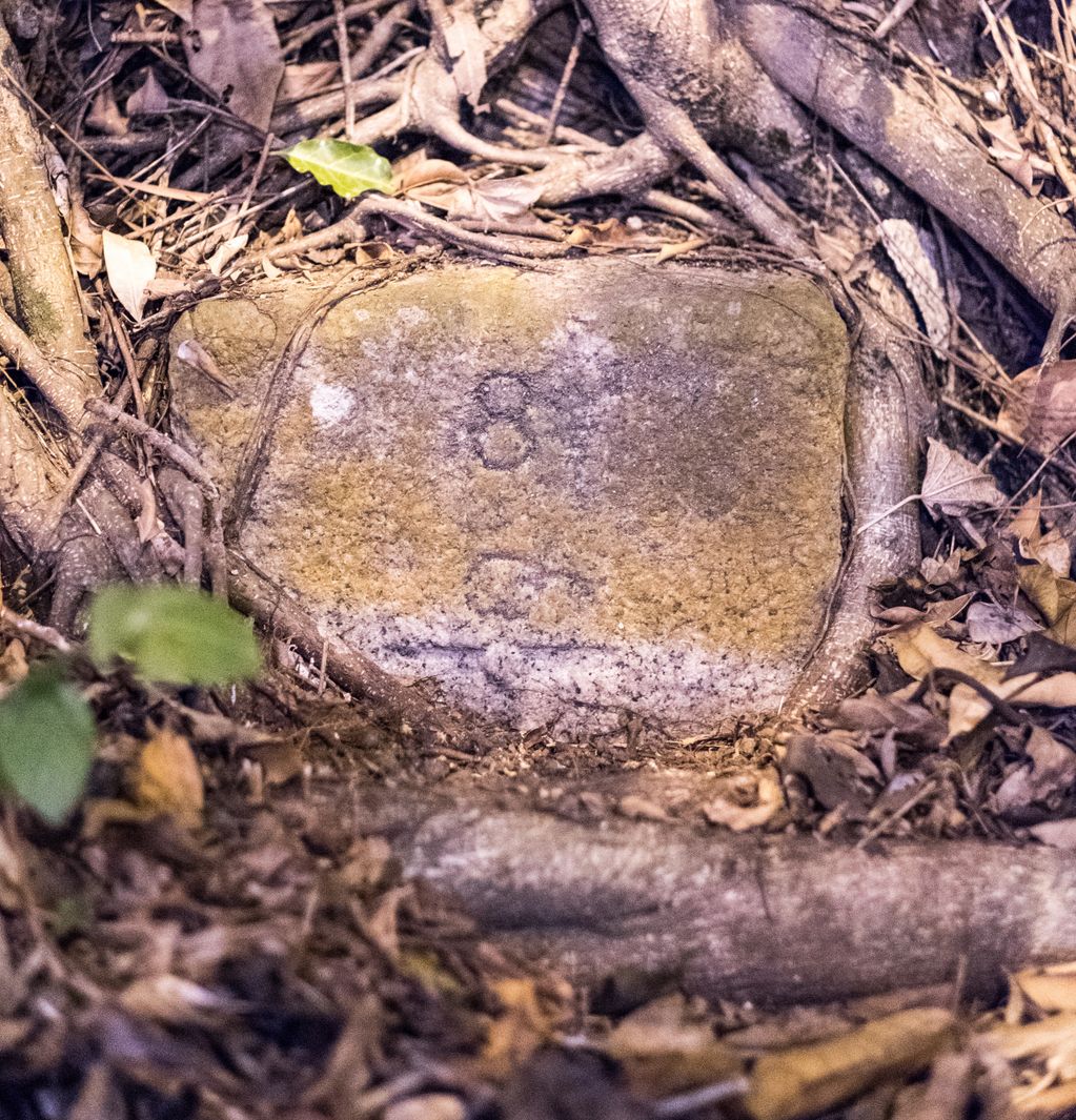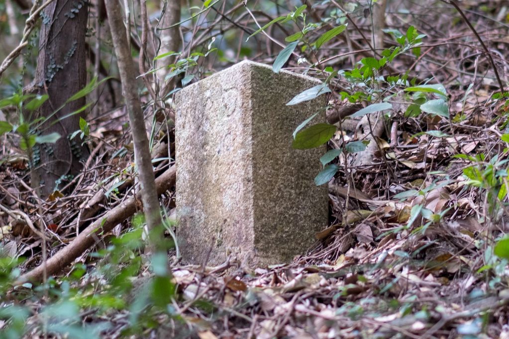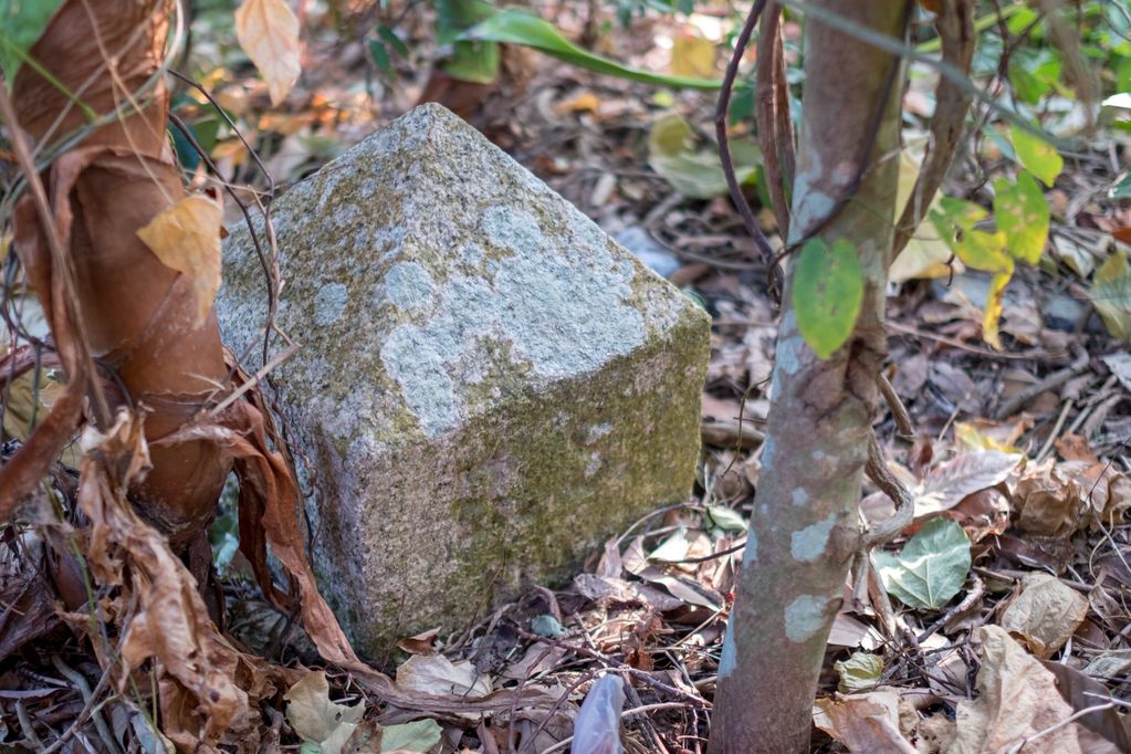 Kowloon Water Works Boundary Stone No 17 off Golden Hill, the inscription has been chiselled away.