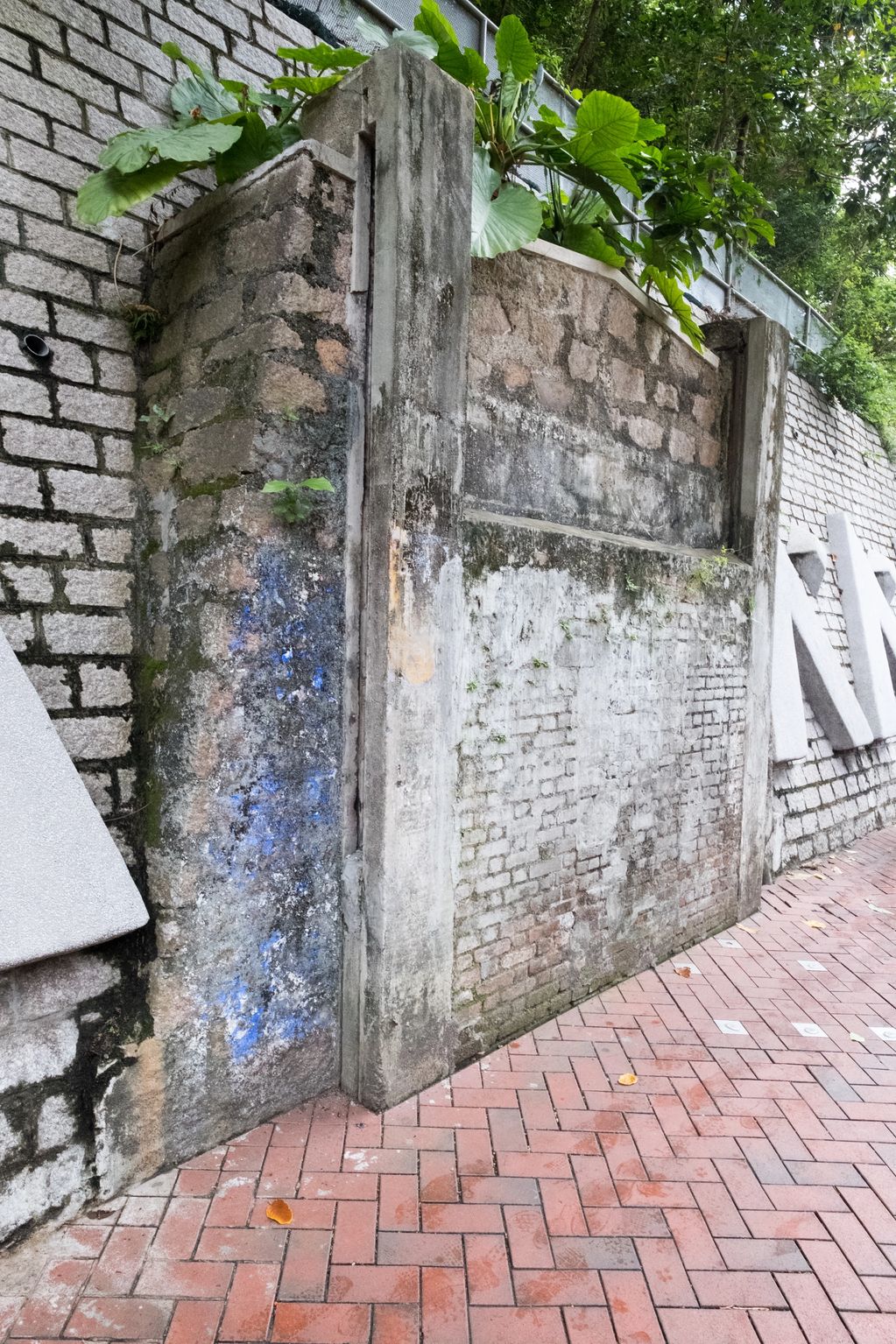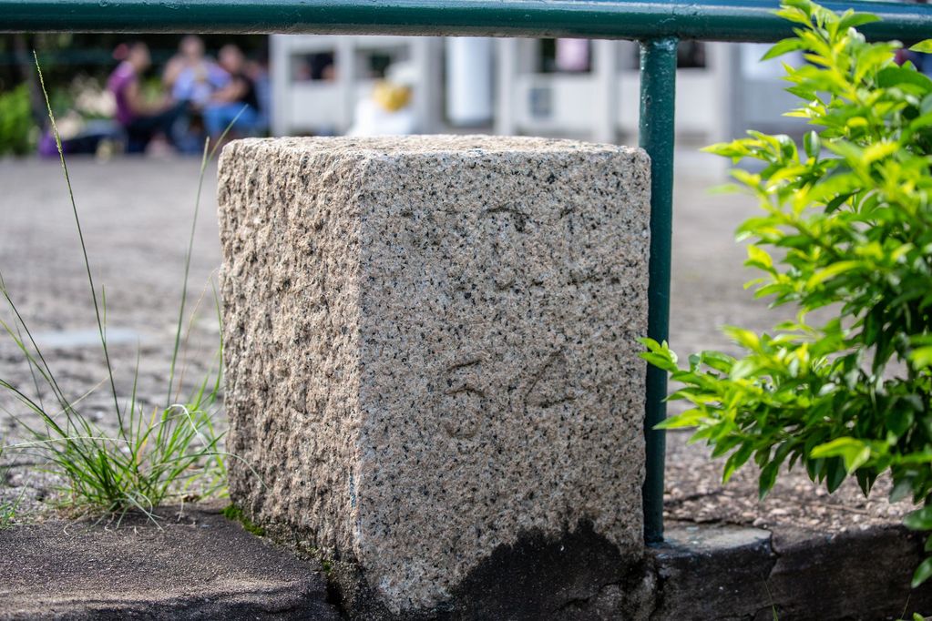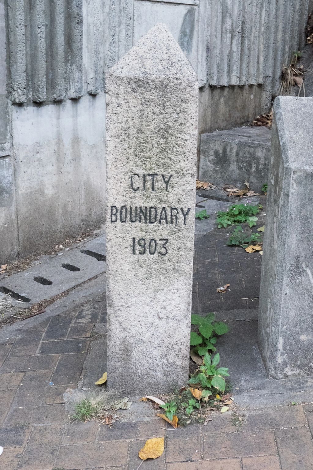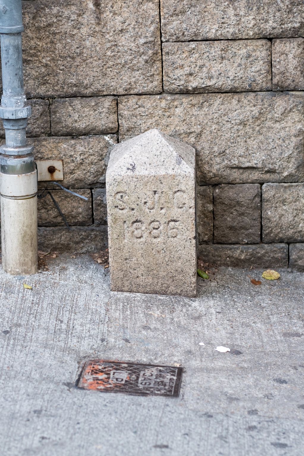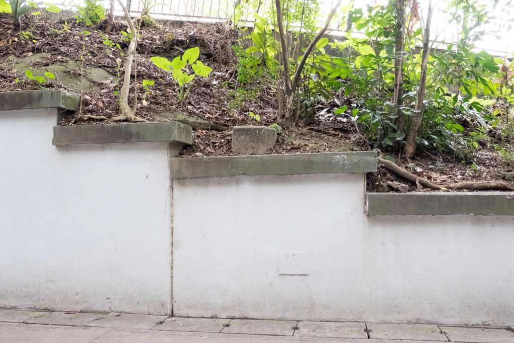 Kowloon Water Works Boundary Stone No 17 off Golden Hill, the inscription has been chiselled away.