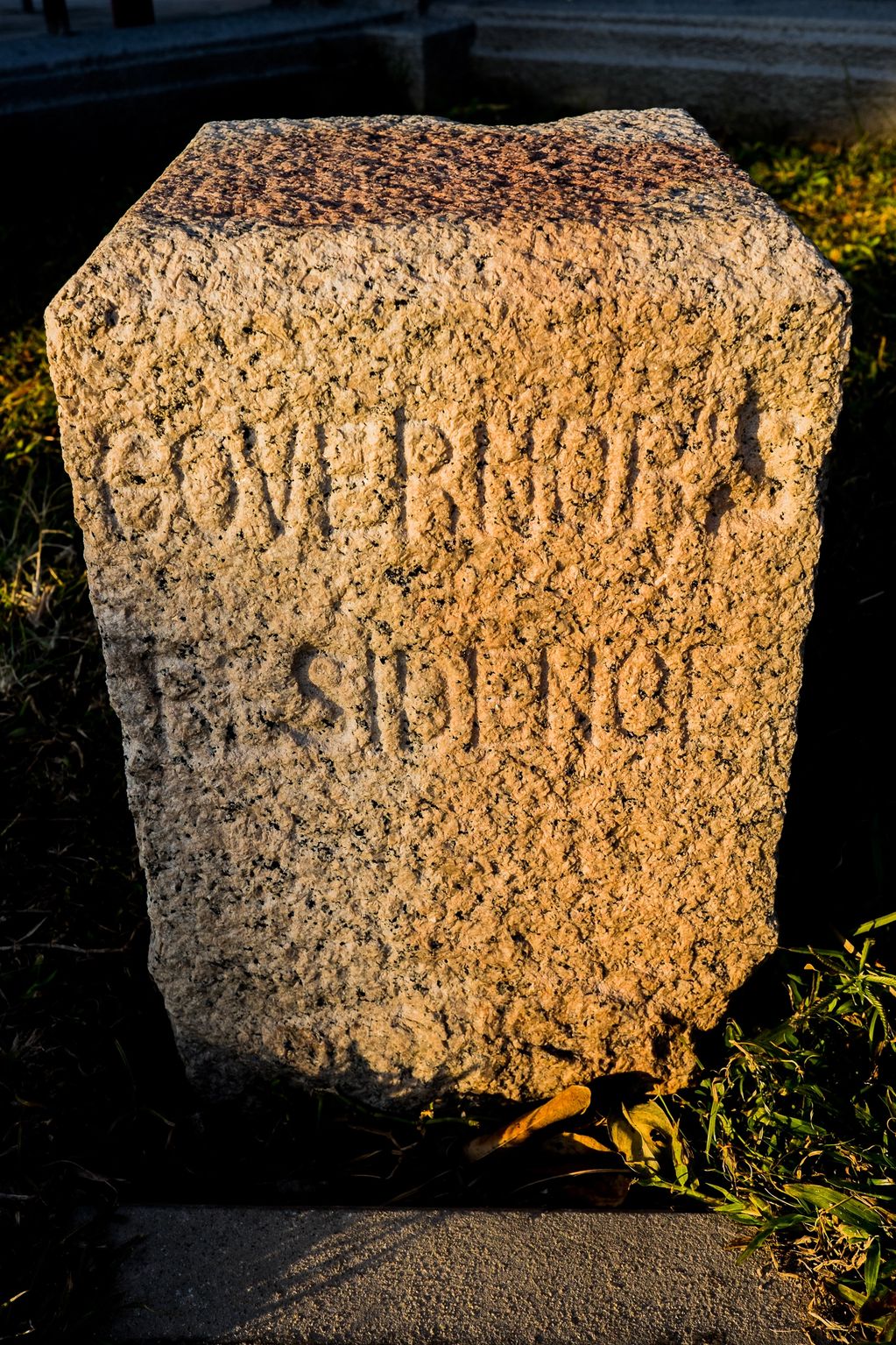 Governor's Residence boundary stone outside Government House. It was originally on Harlech Road on the Peak, marking Mountain Lodge.