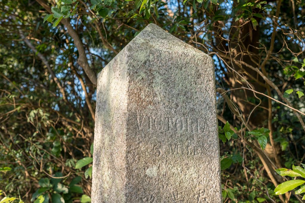 Kwan Tai Lo Milestone erected in 1846, close to Tai Tam Byewash Reservoir. There's also a '5 Miles to Victoria' milestone in the HK Museum of History.